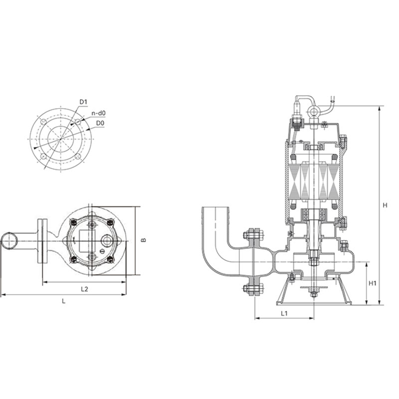 | 2 | 150WQ180-11-11S | 180 | 11 | 11 | 380 | 150 | 1450 | 795 | 325 | 566 | 485 | 1017 | 212 | Φ150 | Φ225 | 4-Φ17.5 | Φ265 |