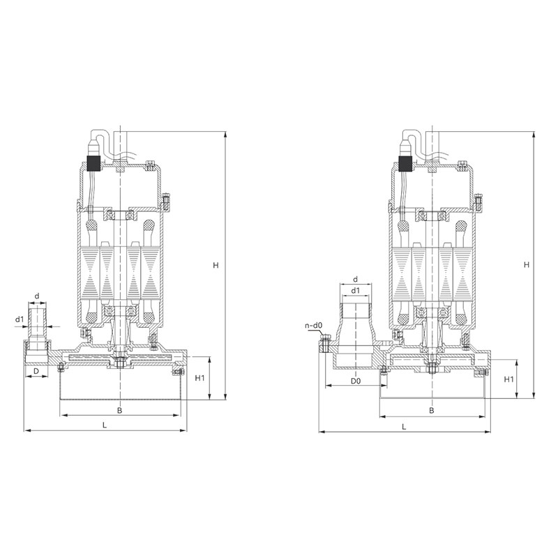 | 4 | Q(D)X10-12-0.55S | 10 | 12 | 0.55 | 220/380 | 50 | 2860/2900 | 256 | 157 | 369 | 55 | \ | Φ50 | G11/4 | 2-M8 | 90 |